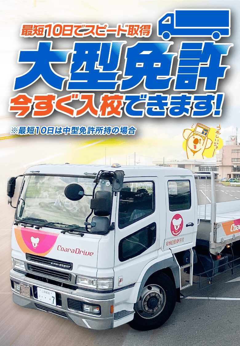 ※ 車両総重量:11t以上、最大積載量:6.5t以上、乗車定員:30人以上、経験:3年以上、21歳以上